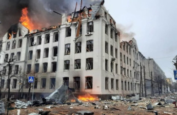 У Харкові внаслідок ворожих обстрілів горить дах будівлі обласного управління внутрішніх справ, житлові будинки, є загроза розповсюдження пожежі.