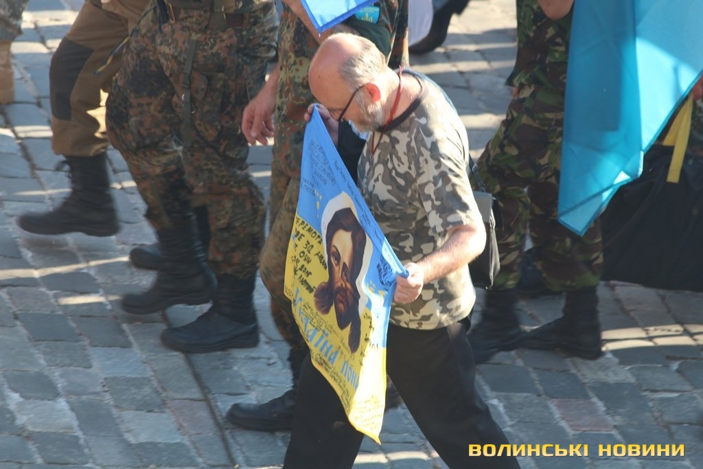 Серед присутніх на марші можна помітити представників«ОУН», «Правого сектору», «Айдару» тощо. Добровольці хочуть, аби влада відмовилася від Мінських домовленостей і оголосила війну проти Росії до звільнення усіх захоплених територій. Окрім того, воїни вимагають звільнення політв’язнів, націоналізації російського бізнесу, вироків соратникам Януковича та кадрових змін в Міноборони.«Ми, праві добровольці, вимагаємо від влади офіційно визнати факт війни в Україні на світовому рівні. Відмова від Мінських домовленостей! Розірвати усі міжурядові відносини з Російською Федерацією, надати ВСІМ добровольчим формуванням гідне озброєння! А також належні права і соціальне забезпечення!», — заявили українські патріоти-націоналісти. Також добровольці вимагають активізувати інформаційну роботу в суспільстві щодо загрози ситуації на Донбасі, негайних кадрових змін в Міністерстві оборони та армії. Для злочинців часів Януковича «ОУН», «ПС» та «Айдар» хочуть «справедливої та негайної кари».