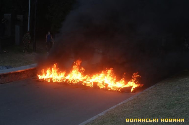 За станом на 20:30 біля стадіону «Динамо» активісти запалили шини. Наразі у центрі Києва стоїть дим. Людям безкоштовно роздають медичні маски. Акція протесту триває.