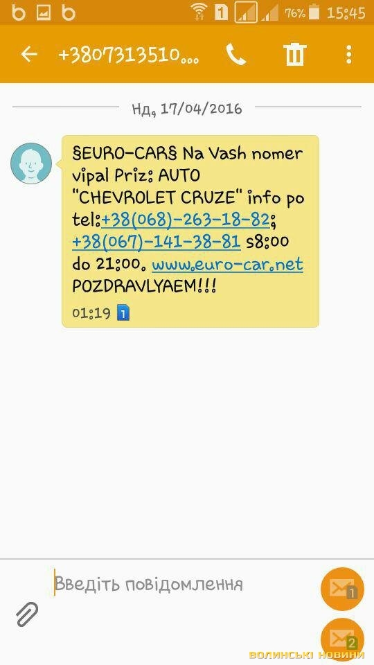 Тож, для того, аби застерегти читачів від необдуманих кроків, внаслідок яких аферисти зможуть із легкістю заволодіти грошима довірливих волинян, репортери Інформаційного агенства Волинські Новини після чергового отримання SMS із сумнівним змістом про «вигране авто» та «заблоковану картку», вирішили зіграти роль довірливої жертви та розговорити шахраїв.