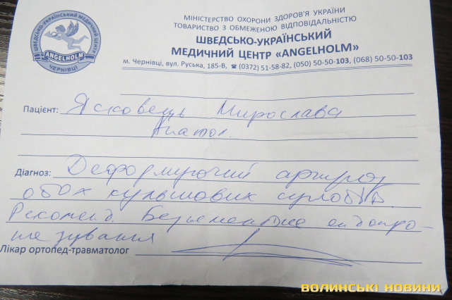 «Мені потрібно було робити операцію на одній нозі ще десять років тому, – каже вона. – Але тоді у мене не було таких грошей. Тепер треба оперувати обидві ноги. Адже один суглоб майже повністю зруйновано. Від того, що постійно йде навантаження на одну ногу, руйнується ще один суглоб».