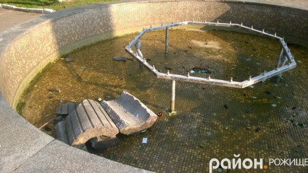 На Волині вандали розбили бетонний смітник та вкинули у фонтан