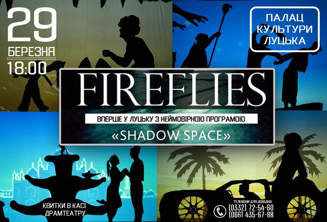Театр тіней «Fireflies» з неймовірним шоу завітає до Луцька 29 березня. Виступ відбудеться в Палаці культури міста Луцька. Початок - о 18:00.