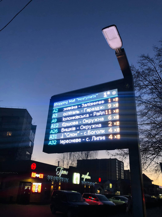 Ось такі інформаційні табло повинні бути на всіх зупинках громадського транспорту, а не чіпсячо-ковбасюкові-чудопічні кіоски на міських інженерних мережах !