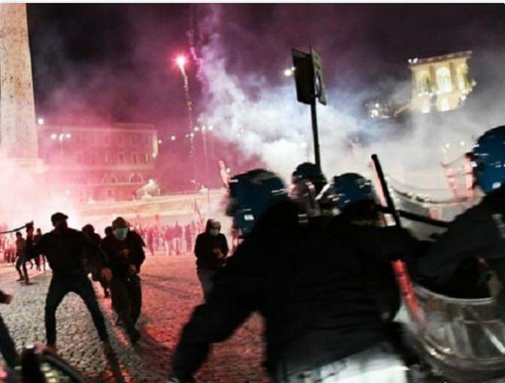 «Сигналом став триколірний феєрверк, що вибухнув о 23:59 в небі над площею Пьяцца дель Пополо. Бойовики Forza Nuova, ультрас-неофашисти, закривають обличчя масками і викрикують звинувачення. Вони зібралися на центральній площі Рима в знак протесту проти «диктатури здоров’я і комендантської години», але відразу ж почалася провокація – запуск предметів і петард в поліцію, яка намагалася розігнати приблизно двісті людей», – йдеться в повідомленні.