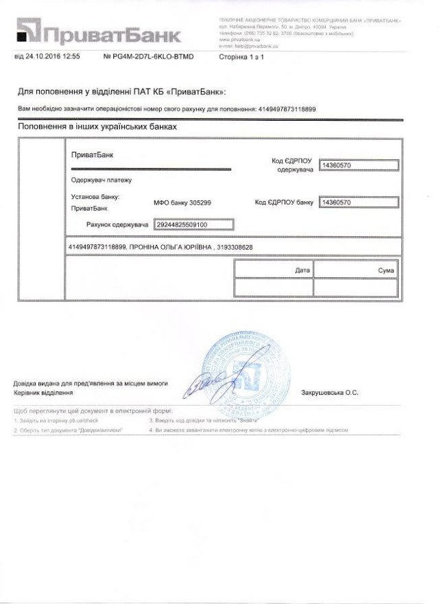 Кошти можна перераховувати на карту ПриватБанку: 4149 4978 7311 8899 (Проніна Ольга).