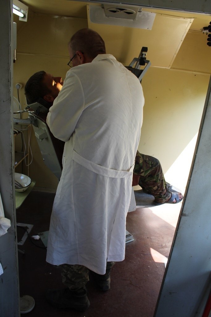 Бійців військової частини В0259 (14 ОМБР) на передовій обслуговує пересувний стоматологічний кабінет. Силами медичної роти старенький «ГАЗ 66» переобладнали під спеціалізований кабінет, у якому військовослужбовців обслуговує дипломований лікар-стоматолог, лейтенант медичної служби, Максим Бабур.