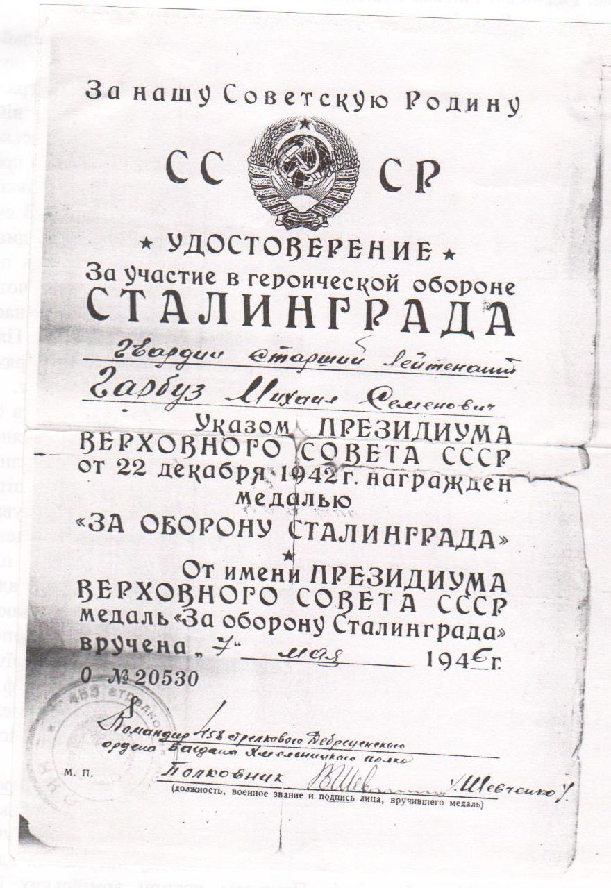 СТАЛІНГРАД У СПОГАДАХ МИХАЙЛА ГАРБУЗА