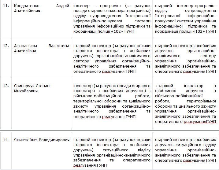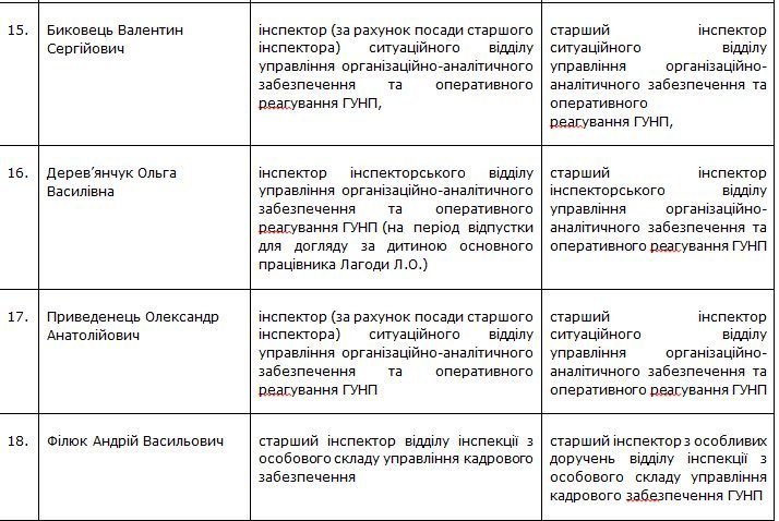 На засіданні комісії буде розглядатись питання призначення на вищу посаду (без проведення конкурсу) наступних працівників ГУНП в області: