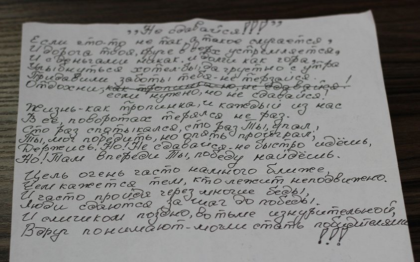 В ідеально складеному рюкзаку, який рідним привезли військові, лишилися речі, блокнот та випадкові записи Рустама на окремих листах. Рідні кажуть, коли той мав натхнення, завжди щось писав. На полях зошита, який потрапив у руки редакції, часто трапляється фраза "За Україну". Весь блокнот списаний іменами та телефонами нових друзів. Їх він мав безліч - був дуже комунікабельним, найбільше нових товаришів, розповідав, знайшов на Майдані.