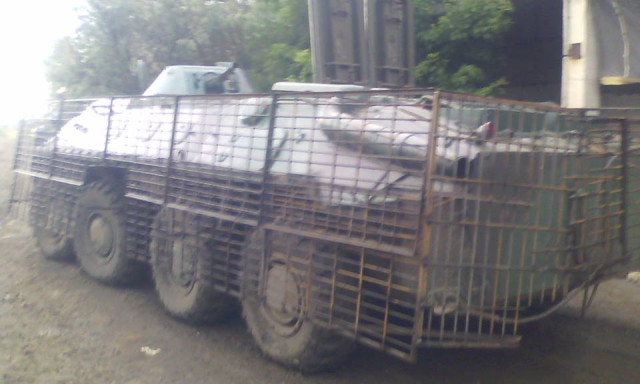 Таке відчуття що на цей БТР вчепили вкрадену у колгоспі огорожу.