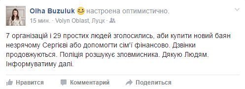 Дзвінки продовжуються. Поліція розшукує зловмисника. Дякую Людям. Інформуватиму далі, - написала Ольга Бузулук.