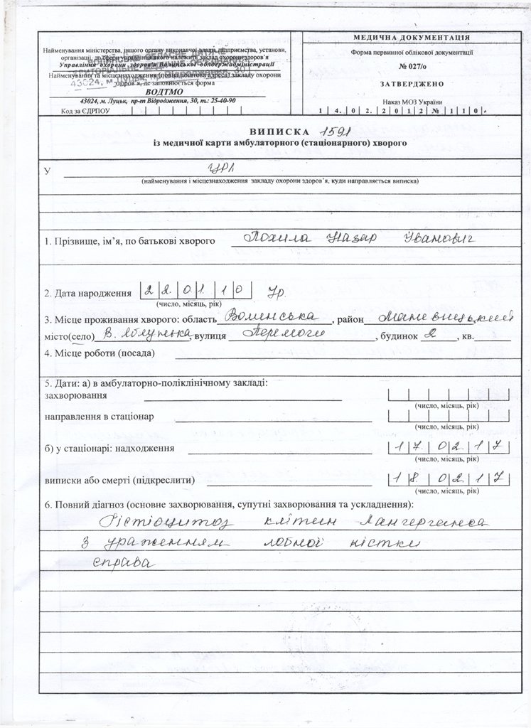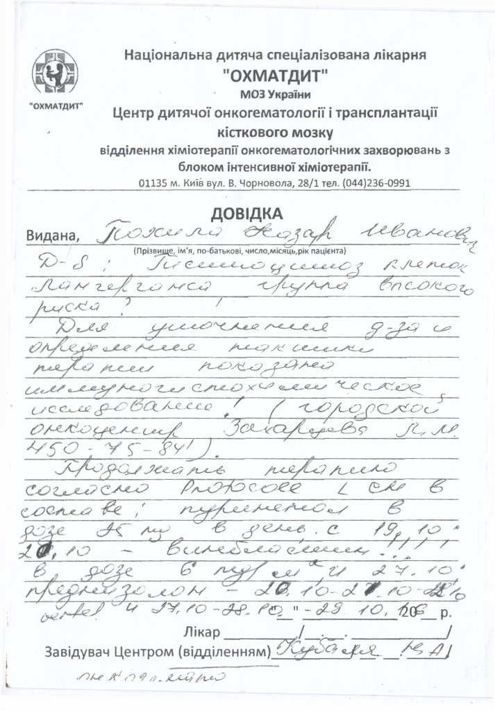 Важкохворому 7- річному Назару Похилі терміново потрібні кошти на лікування. Діагноз – «Гістіоцитоз клітин Лангерганса з ураженням лобної кістки справа». Наразі дитина разом з батьками знаходиться у Польщі, в Centrum Zdrowia Dziecka, al.Dzieci Polskich 20, Warszawa. У клініці протягом 10-ти днів було проведено кілька складних операцій.