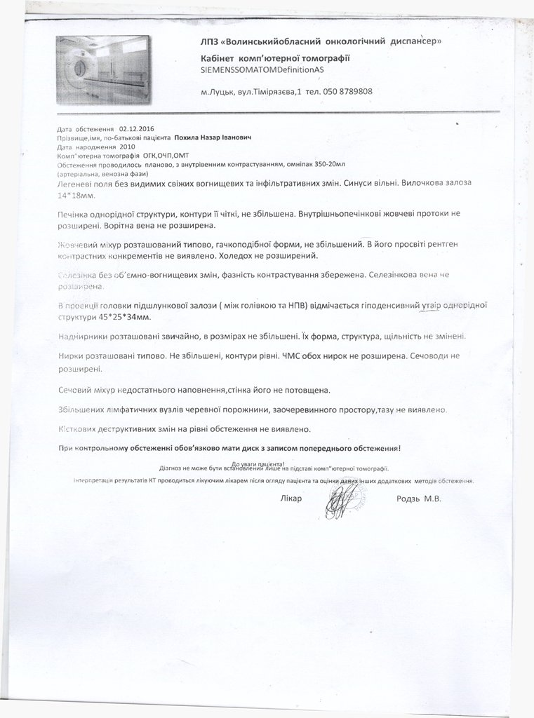 «Клініка Варшави виставила нам рахунок 130 тис.злотих (910 тис.грн.). Назарчику 20 квітня хірурги видалили пухлину з підшлункової залози, після операції пішли тяжкі ускладнення, оскільки Україні дитина перенесла операцію з видалення пухлини на голові і 17 хіміотерапій. Зараз стан сина тяжкий, він вже переніс 6 складних операцій в клініці», - розповів батько Назара Іван.
