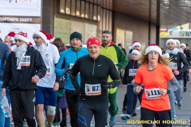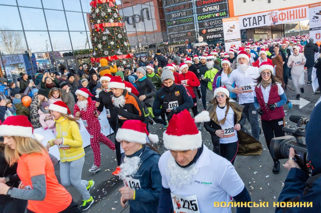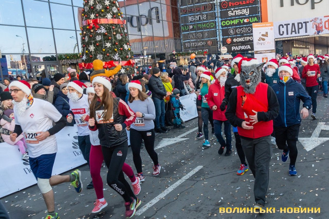 До речі, багато хто вирішив підтримати невимушену атмосферу і прийшов у костюмах та з домашніми улюбленцями.Перед стартом ведучий оголосив про початок розминки, яку за допомогою запальних танців провели зі сцени дівчата. Справжнім сюрпризом для наймолодших глядачів дійства стала поява спортсменів-екстремалів, які спустилися з даху торгового-комплексу. Після традиційного відліку стартував і сам забіг.Один із організаторів акції Олександр Оришко розповів, що у заході взяли участь 700 учасників. Це, наразі, рекорд забігу. Він відзначає, що охочих виявилося значно більше, ніж очікувалося — останні декілька днів був справжній ажіотаж. То ж організатори вважають, що наступного року кількість «Святих Миколаїв» може перевищити тисячу.Учасників забігу розподілили відповідно до віку та дистанції. Дорослим — від 14 років — доведеться подолати відстані 2 км та 7 км. Дитячі пробіги — 100 м (1-6 років), 300 м (7-9 років) та 500 м (10-13 років).Спортивно-розважальна акція має ще й важливу соціальну мету. Зібрані кошти, які отримали завдяки внескам учасників забігу та спонсорам, будуть передані Ресурсному центру «Кольорова капустинка».Фото Олександр Дурманенко.
