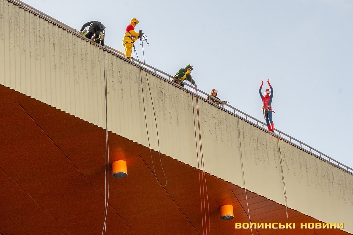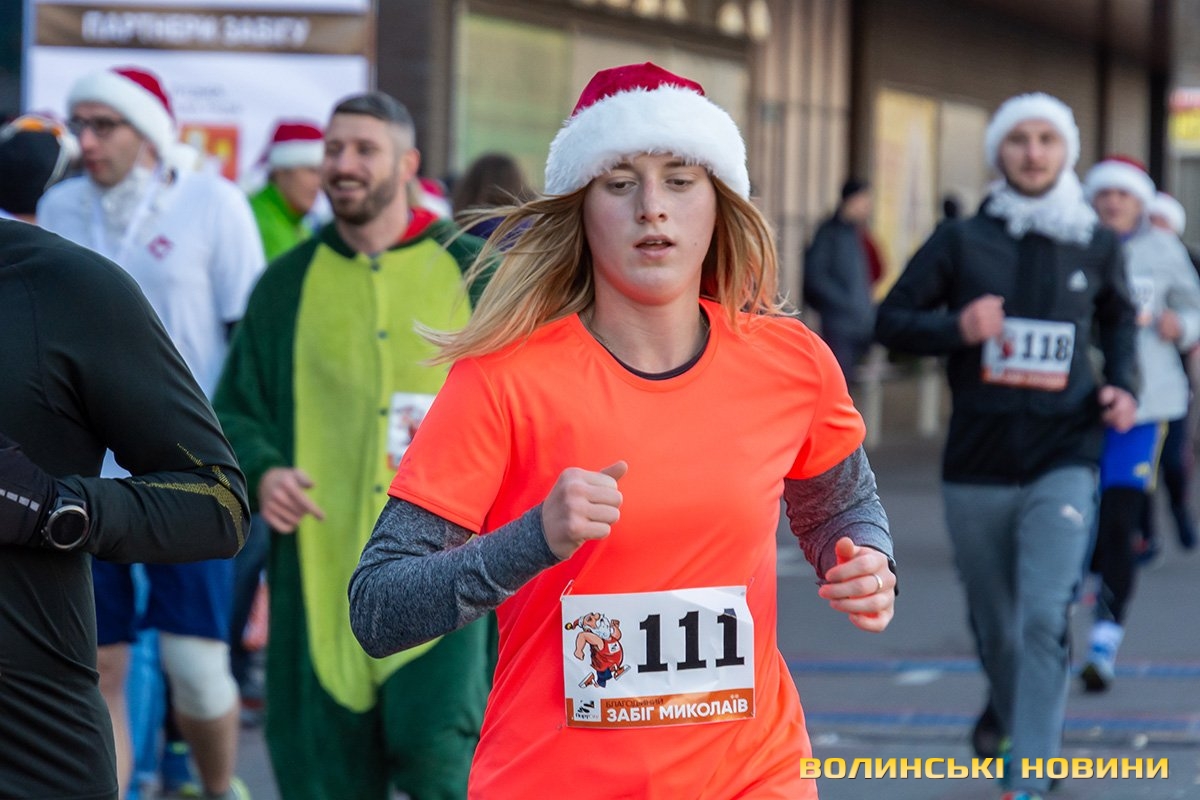 До речі, багато хто вирішив підтримати невимушену атмосферу і прийшов у костюмах та з домашніми улюбленцями.Перед стартом ведучий оголосив про початок розминки, яку за допомогою запальних танців провели зі сцени дівчата. Справжнім сюрпризом для наймолодших глядачів дійства стала поява спортсменів-екстремалів, які спустилися з даху торгового-комплексу. Після традиційного відліку стартував і сам забіг.Один із організаторів акції Олександр Оришко розповів, що у заході взяли участь 700 учасників. Це, наразі, рекорд забігу. Він відзначає, що охочих виявилося значно більше, ніж очікувалося — останні декілька днів був справжній ажіотаж. То ж організатори вважають, що наступного року кількість «Святих Миколаїв» може перевищити тисячу.Учасників забігу розподілили відповідно до віку та дистанції. Дорослим — від 14 років — доведеться подолати відстані 2 км та 7 км. Дитячі пробіги — 100 м (1-6 років), 300 м (7-9 років) та 500 м (10-13 років).Спортивно-розважальна акція має ще й важливу соціальну мету. Зібрані кошти, які отримали завдяки внескам учасників забігу та спонсорам, будуть передані Ресурсному центру «Кольорова капустинка».Фото Олександр Дурманенко.