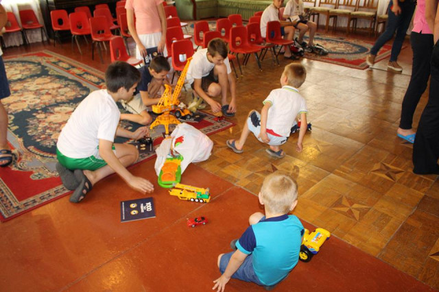 Хлопчик Олександр вручив іграшки кожній дитині, ще багато іграшок передали вихователям: ними бавитимуться всі разом у групах.