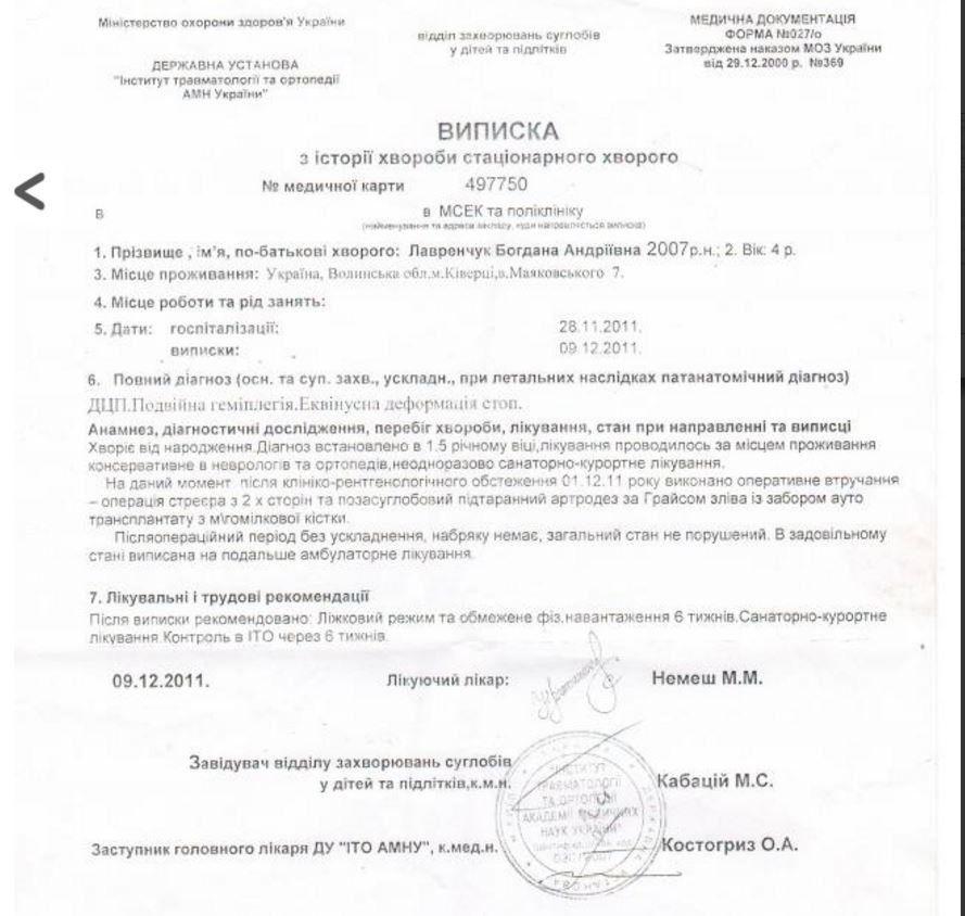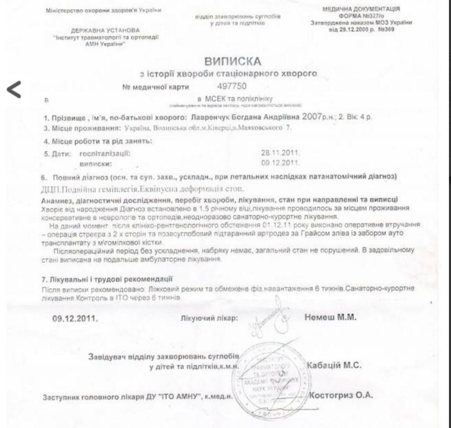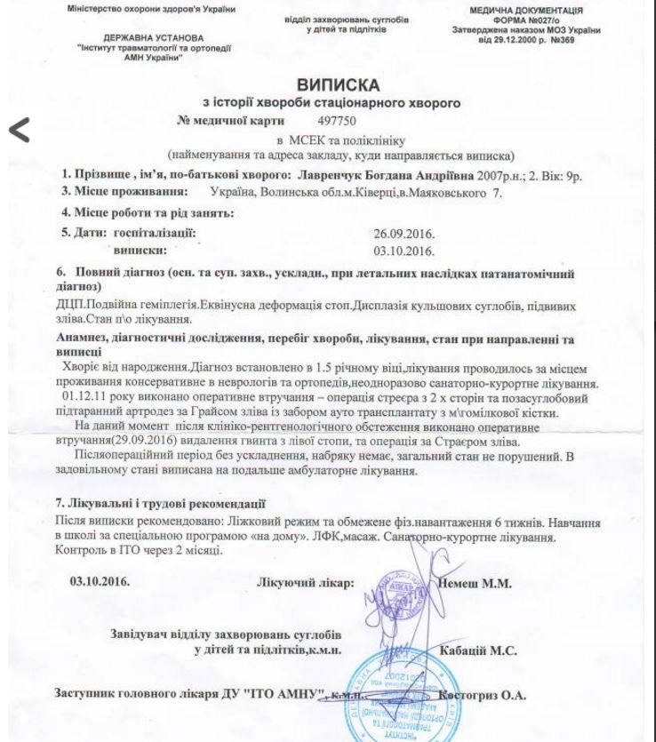 Після оперативних втручань та реабілітації у дівчинки спостерігається значне покращення стану здоров’я, суттєво підвищується рухова активність.
