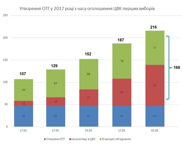 Загалом, за результатами моніторингу Мінрегіону, станом на 2 червня, на фінальних стадіях формування знаходиться 169 об’єднаних громад: