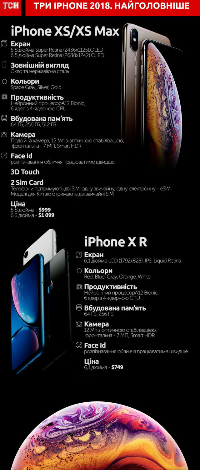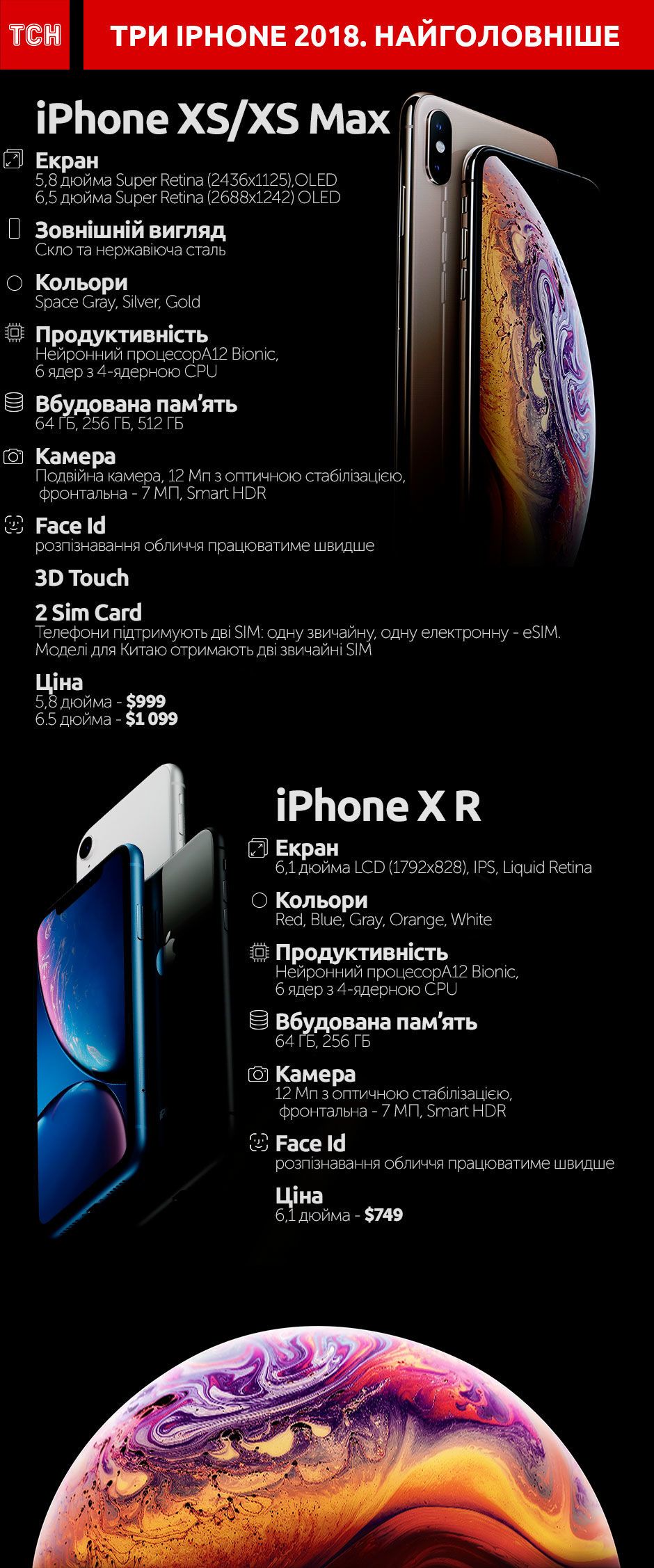 Чим три нові iPhone відрізняються, дивіться в інфографіці ТСН: