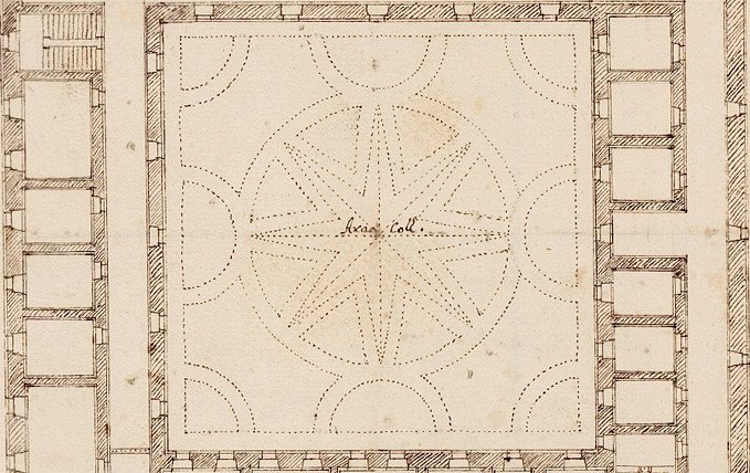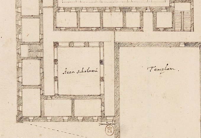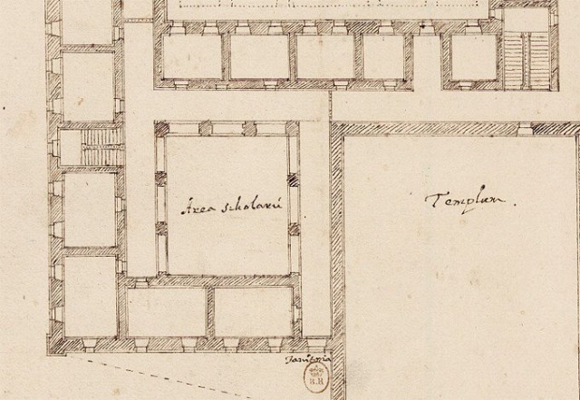Внутрішній двір колегіуму на плані Бенедикта Моллі. Тут відбувалися масові заходи і збори студентського і викладацького колективів, а також інші зібрання