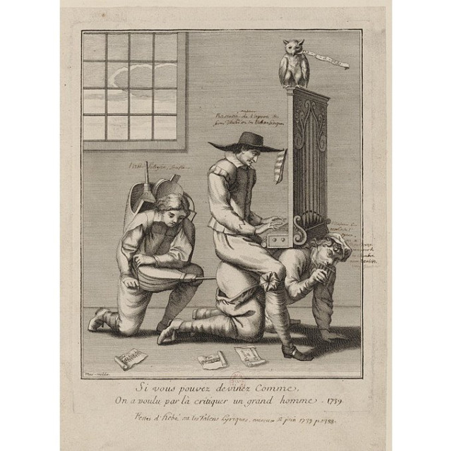Навчання гри на органі, карикатура XVIII століття. Зображення проекту Gallica