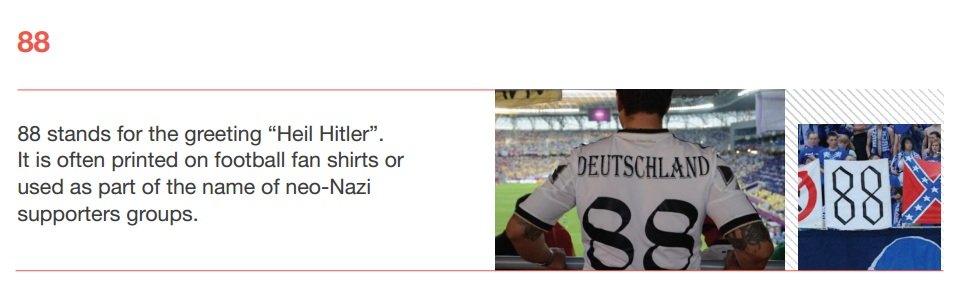 У наочний посібник FARE внесла й фанатів луцької «Волині», як приклад заборони на комбінацію цифр «14/88». Зазначимо, згідно тлумачення символів FARE число «14» означає 14 слів Девіда Лейна (відомого неонацистського діяча), а «88» - абревіатуру «НН», що означає «Heil Hitler».
