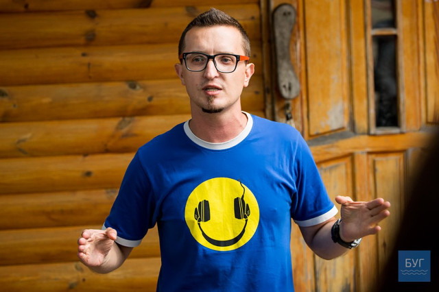 В обідню пору, близько 15-ї години розпочалася гутірка із Андрієм Тимчуком, вокалістом гурту “ФлайzZza”. Поспілкуватися з виконавцем зібралося кілька десятків молоді.