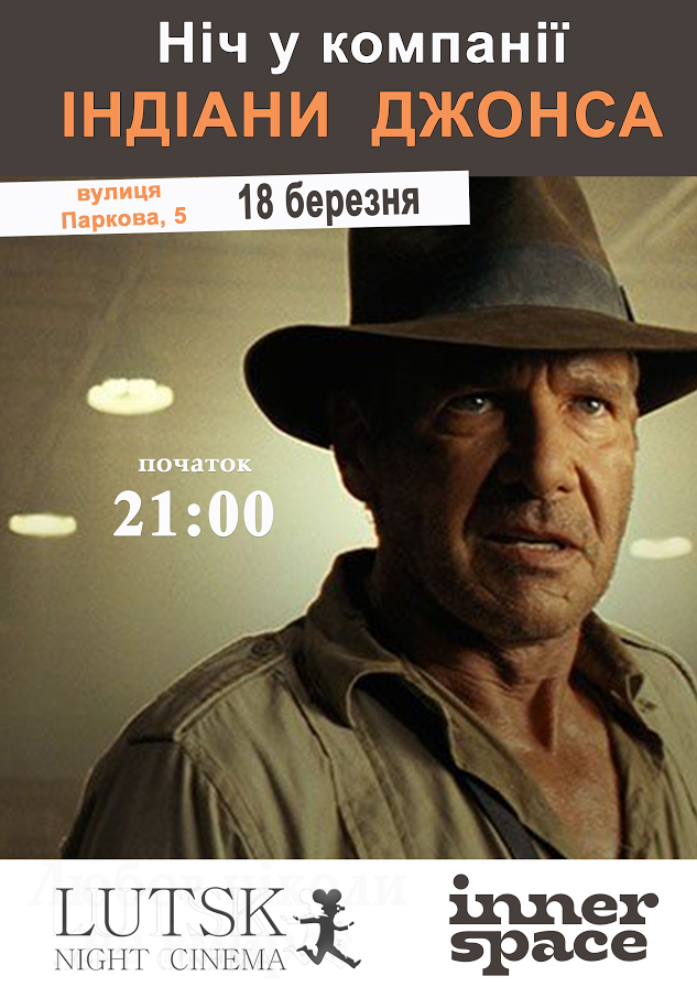 Березневий кінопоказ «Lutsk Night Cinema» присвятить всесвітньовідомому Індіані Джонсу. Тож поціновувачів пригодницького кіно кличуть у суботу, 18 березня, о 21:00 у приміщенні антикафе «Inner Space».