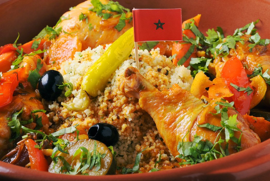 Марокканський тажин з куркою та кус-кусом – це справжня гастрономічна бомба. Тажин – це спеціальний посуд у північно- африканських країнах, який утримує і посилює аромати усіх інгредієнтів. Він і дав назву найвідомішій марокканській страві. Справді, курага, імбир, шафран, кориця і солені цитрини у цій страві прекрасно виражені та збалансовані з ніжним смаком м»яса і розсипчастим кус-кусом.