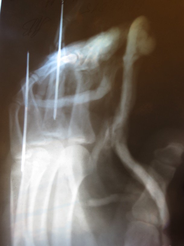 Зокрема, у Валерія відсутня нігтьова фаланга на другому пальці, а роздроблені суглоби зрослись з кістками.