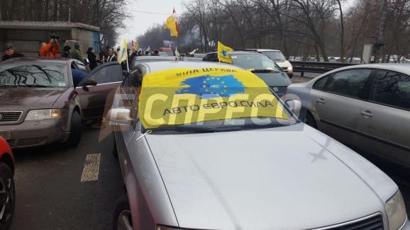 Кілька десятків людей та автомобілів зібралися на в'їздах до Києва на Бориспільській, Житомирській, Варшавській і Одеській трасах та заблокували по одній і дві смуги на дорогах.