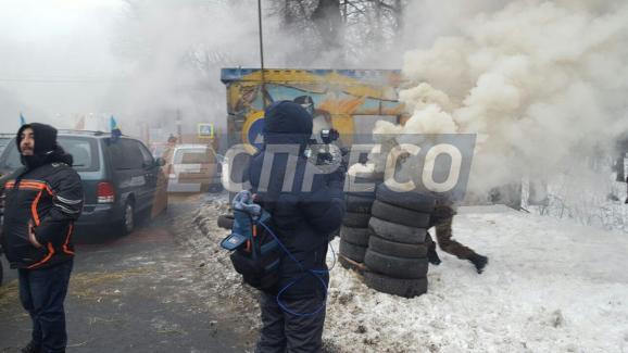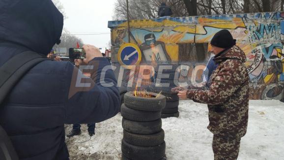 На Бориспільській і Одеських трасах перекрили по дві смуги. Активісти палять шини. На дорогах є значні затори.