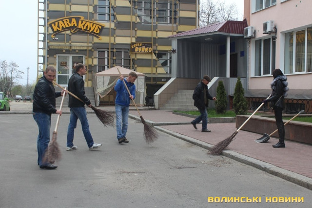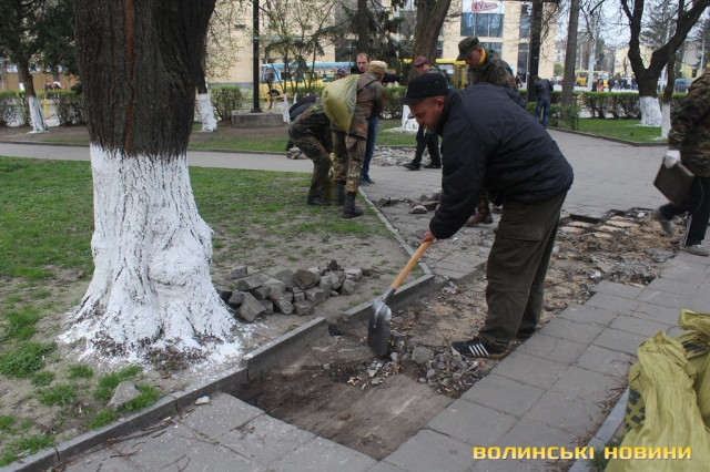 Ініціативу організувати суботник висловили у Самообороні Волині. Працівники міліції вирішили не стояти осторонь та приєдналися до роботи.
