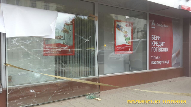 Нагадаємо, уночі 29 березня у Луцьку побили вікна трьох банків: Сбербанк, Альфа-Банк та Промінвестбанк.