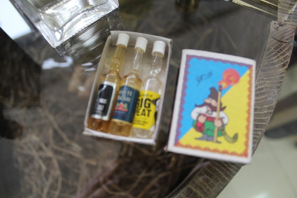 «Усі колекціонери збирають пляшечки місткістю від 50 грам і менше, - розповідає Сергій. – Більші не мають такої цінності. Хоч я спочатку збирав й стограмові, бо не знав, які треба. Потім знайшов в інтернеті на спеціальних сайтах інформацію про таке колекціонування. Найменша пляшечка, яка у мене є, – 1,2 мілілітра. Три таких пляшечки коньяку поміщаються в сірникову коробку.