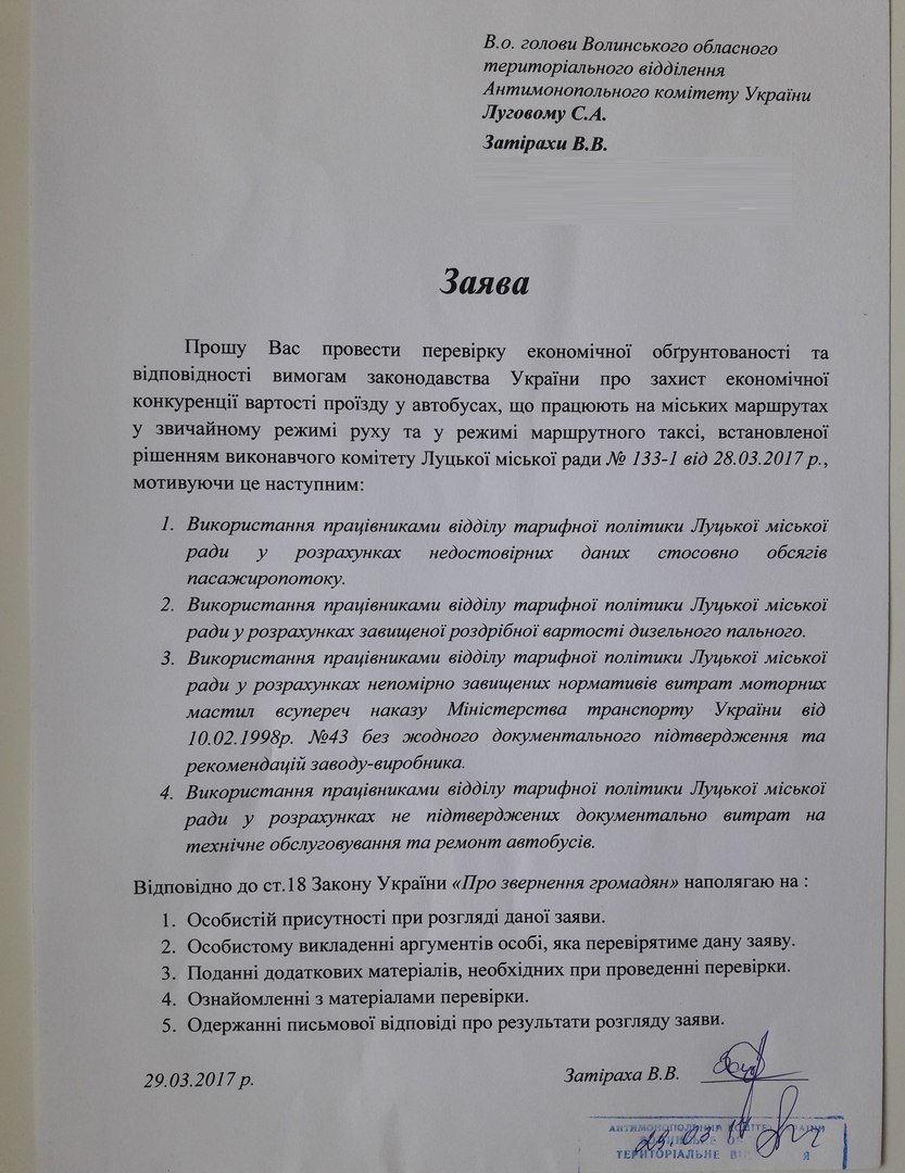 Відповідну заяву до антимонопольників написав лучанин Віталій Затіраха 29 березня.