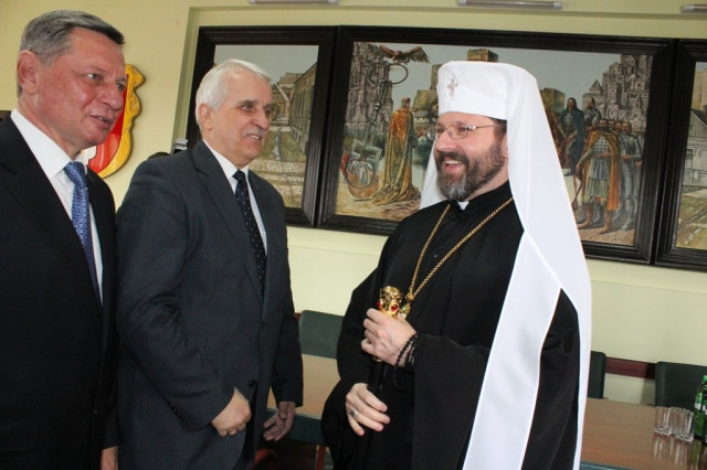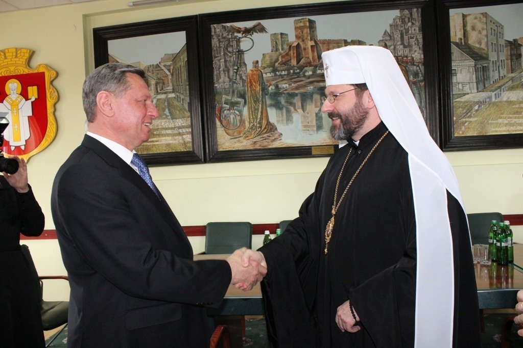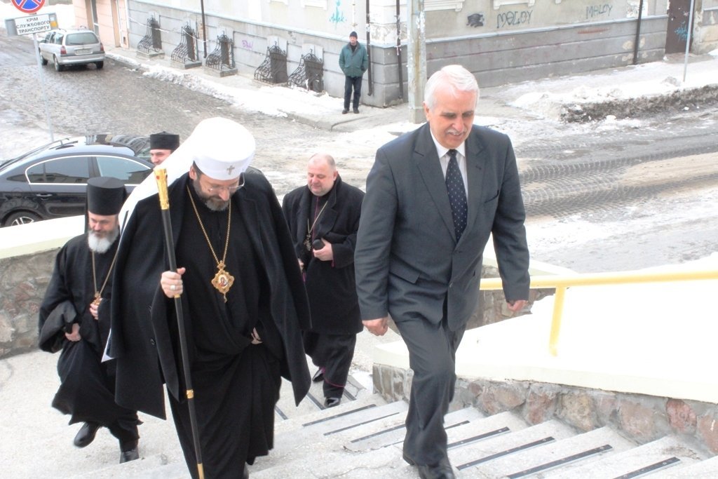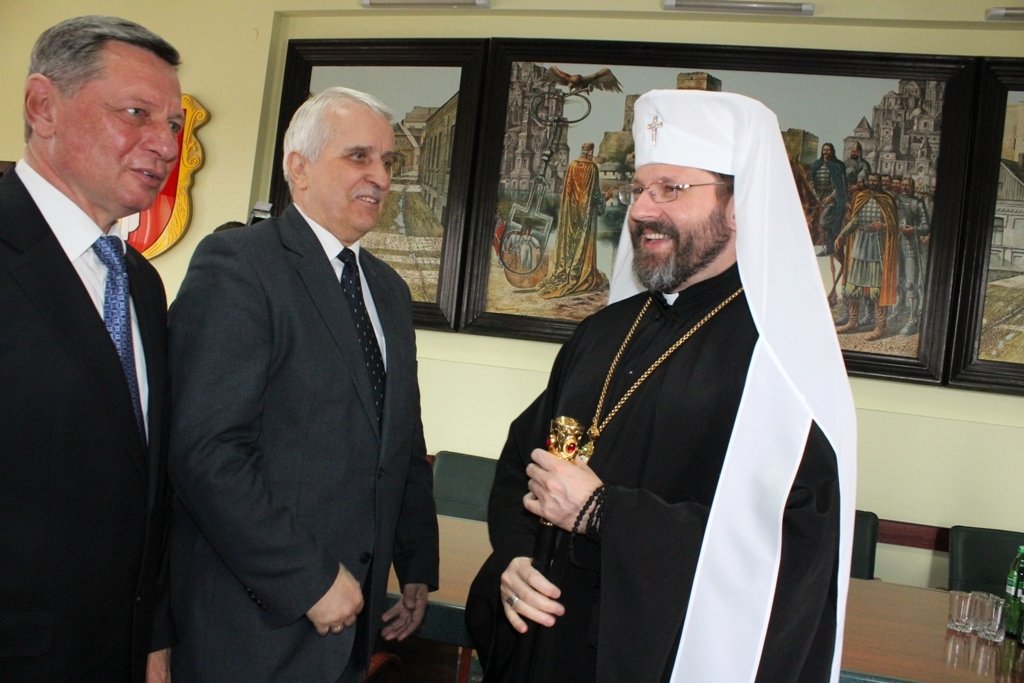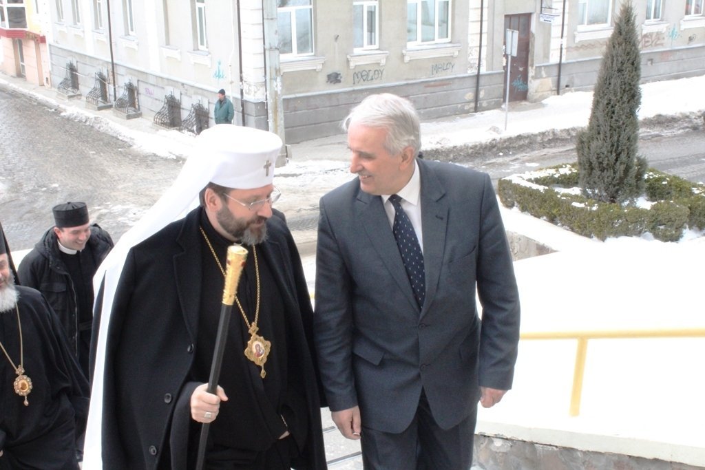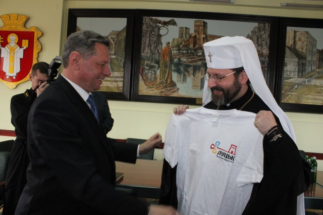 Верховний архієпископ УГКЦ Святослав (Шевчук) зустрівся з міським головою Миколою Романюком. За словами патріарха, це так званий «візит ґречності», під час якого архієпископ познайомився із очільником міста.