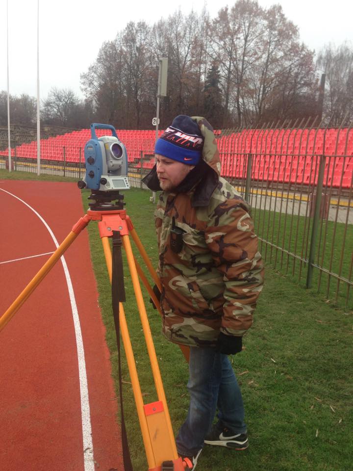 Отже, наразі на стадіоні здійснюють геодезичні знімання показників, які внесуть у відповідні форми. Це роблять сертифіковані спеціалісти на сертифікованому приладі.