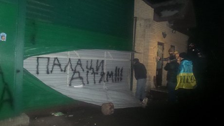 Окрім того мітингувальники написали фарбою на воротах і паркані гасла, зокрема, "Палаци дітям!".