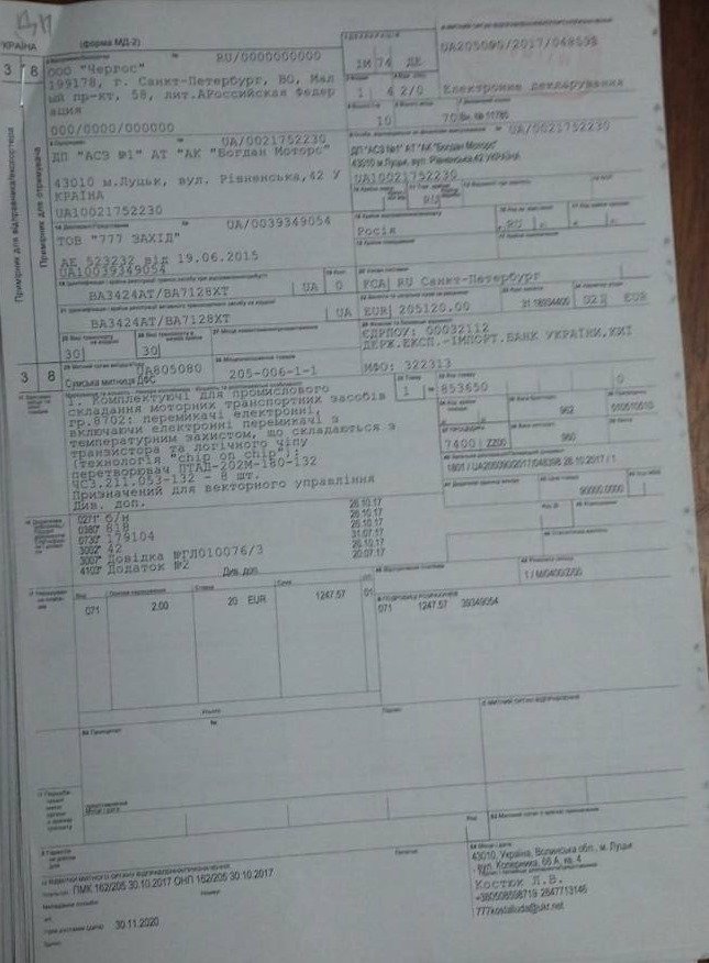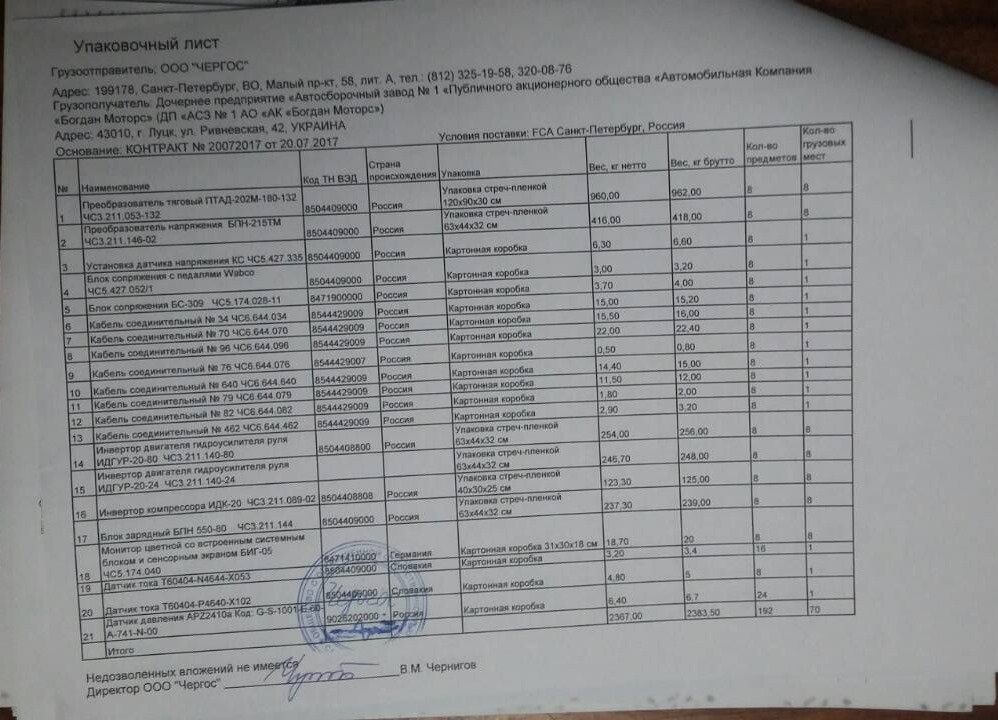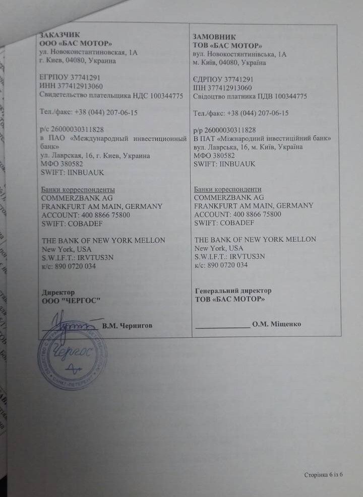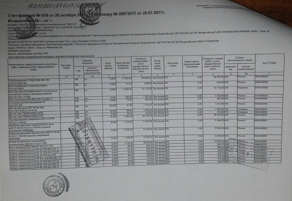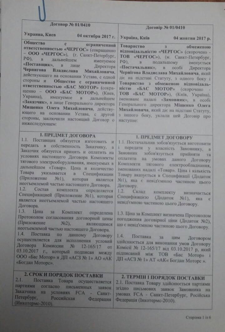 Так, відповідно до договору від 4 жовтня 2017 року, ТзОВ «БАС МОТОР», яке є структурним підрозділом і дистриб’ютором техніки компанії «Богдан», налагодило співпрацю з ТзОВ «ЧЕРГОС», зареєстрованим у Санкт-Петербурзі. Поставка за цим договором здійснюється для виконання умов іншого – між «БАС МОТОР» і ДП «АСЗ № 1» АТ «АК «Богдан Моторс».