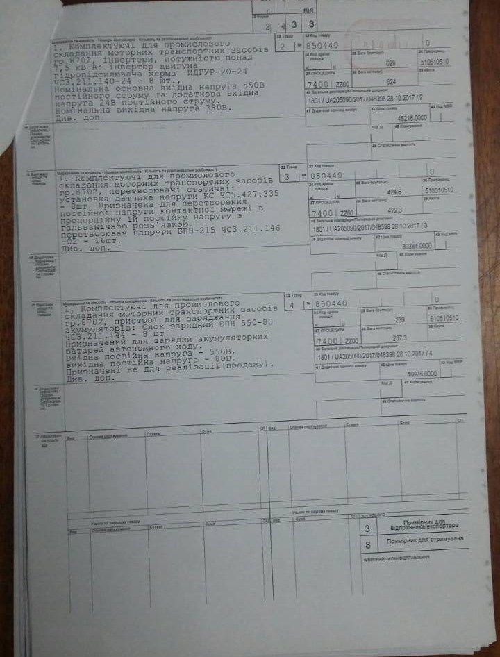 Предметом договору є комплекти тягового електрообладнання. Це, зокрема, комплектуючі для промислового складання моторних транспортних засобів, електронні перемикачі, кабелі, інвертори двигуна гідропідсилювача керма, перетворювачі напруги, зарядні блоки. Їх поставка здійснювалася на умовах FCA Інтеркомс-2010, тобто проходження експортних митних процедур для ввезення обладнання на територію України перейняв постачальник – ТзОВ «ЧЕРГОС».