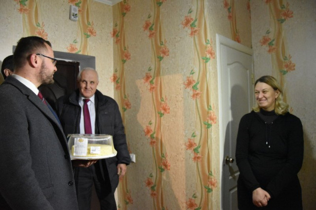 Перший заступник міського голови Григорій Недопад, радник міського голови Ігор Поліщук та в.о. генерального директора “Луцьке підприємство електротранспорту” Володимир Пуц 20 березня відвідали лучанку, багатодітну матір Оксану Владичко, яка отримала двокімнатну квартиру.