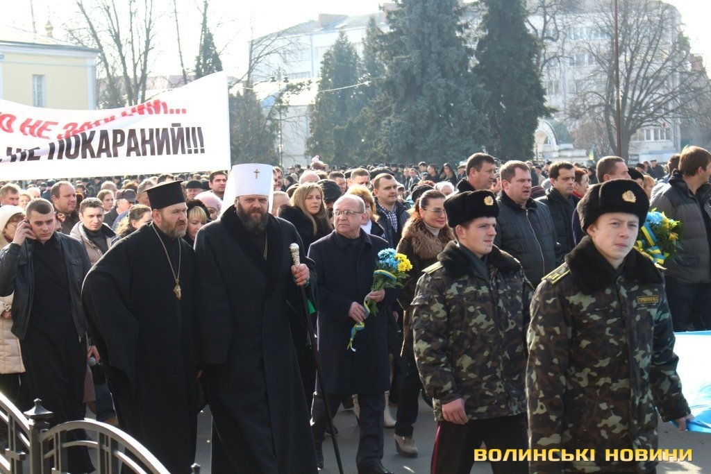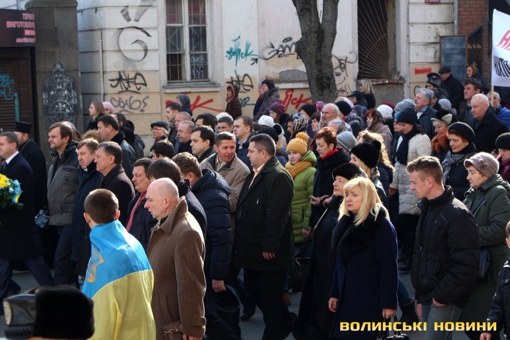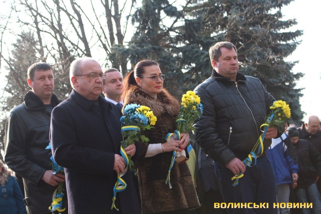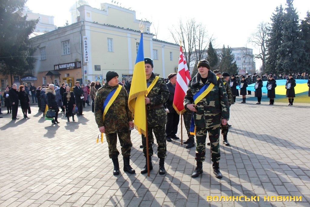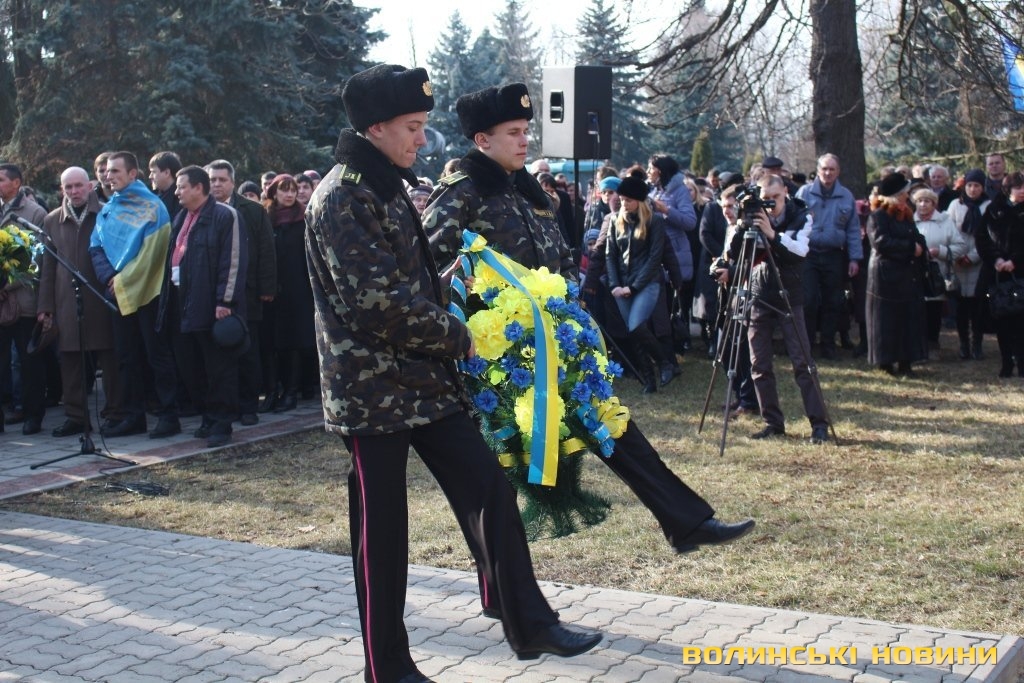 Панахиду за загиблими Героями відслужив митрополит Луцький та Волинський Михаїл. Голова облдержадміністрації Володимир Гунчик зазначив, що сьогодні, як ніколи, відчувається біль втрати, скорбота за молодими людьми, які, незважаючи на свій вік та бажання жити, віддали життя за нашу свободу, незалежність, краще життя наших дітей та онуків. Він підкреслив, що сьогодні уся країна схиляє голову перед пам’яттю Героїв Небесної Сотні, мільйони людей вшановують їхній подвиг. З його слів, коли на сході триває кровопролитна війна, а наші рідні захищають волю та незалежність, важливо пам’ятати, що перший подвиг зробили саме воїни Небесної Сотні, поклавши життя за світле майбутнє України.