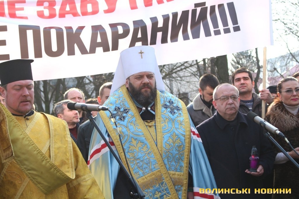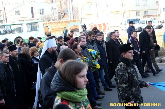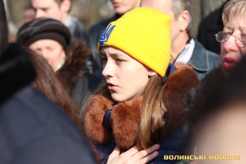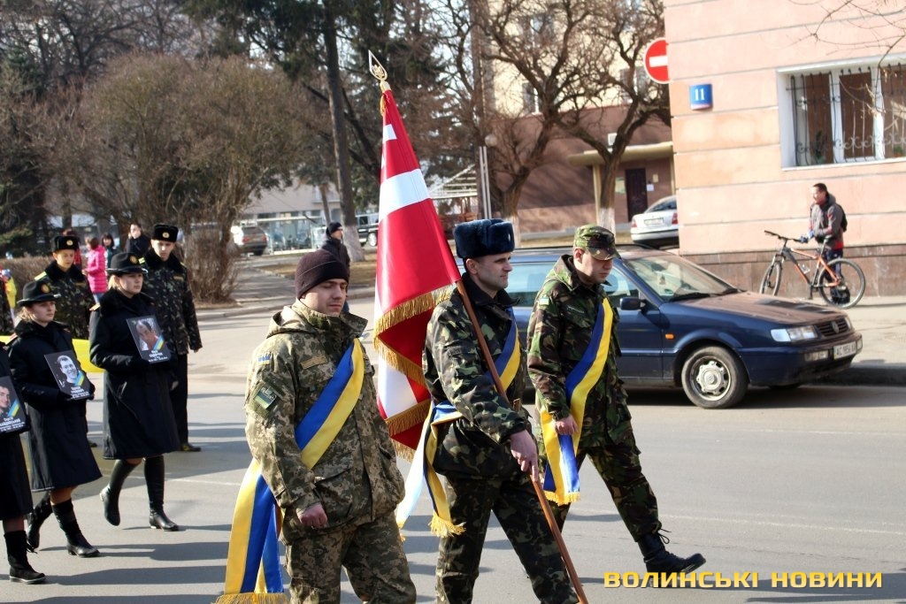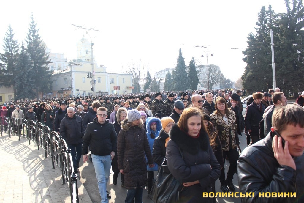 Панахиду за загиблими Героями відслужив митрополит Луцький та Волинський Михаїл. Голова облдержадміністрації Володимир Гунчик зазначив, що сьогодні, як ніколи, відчувається біль втрати, скорбота за молодими людьми, які, незважаючи на свій вік та бажання жити, віддали життя за нашу свободу, незалежність, краще життя наших дітей та онуків. Він підкреслив, що сьогодні уся країна схиляє голову перед пам’яттю Героїв Небесної Сотні, мільйони людей вшановують їхній подвиг. З його слів, коли на сході триває кровопролитна війна, а наші рідні захищають волю та незалежність, важливо пам’ятати, що перший подвиг зробили саме воїни Небесної Сотні, поклавши життя за світле майбутнє України.