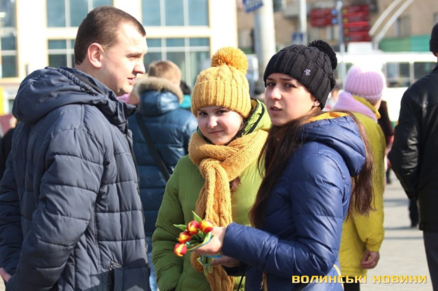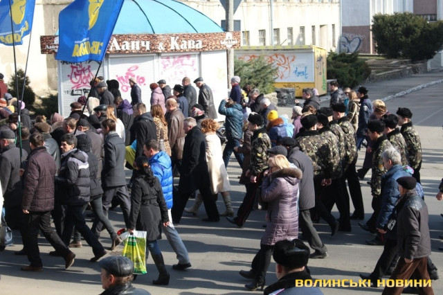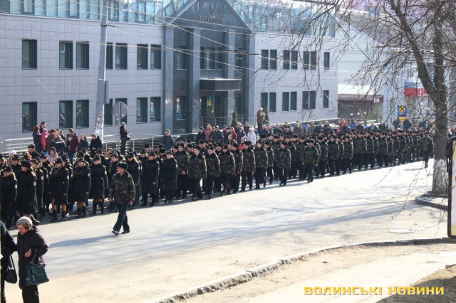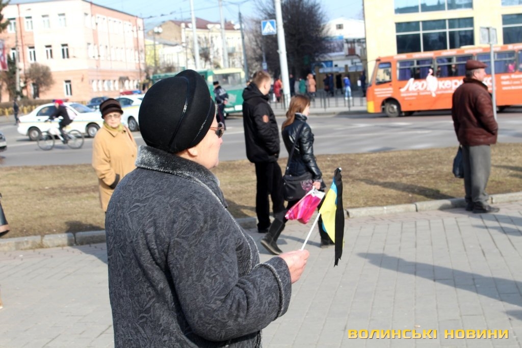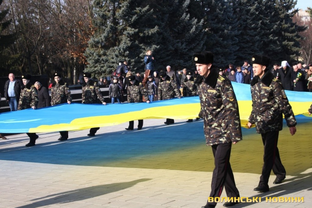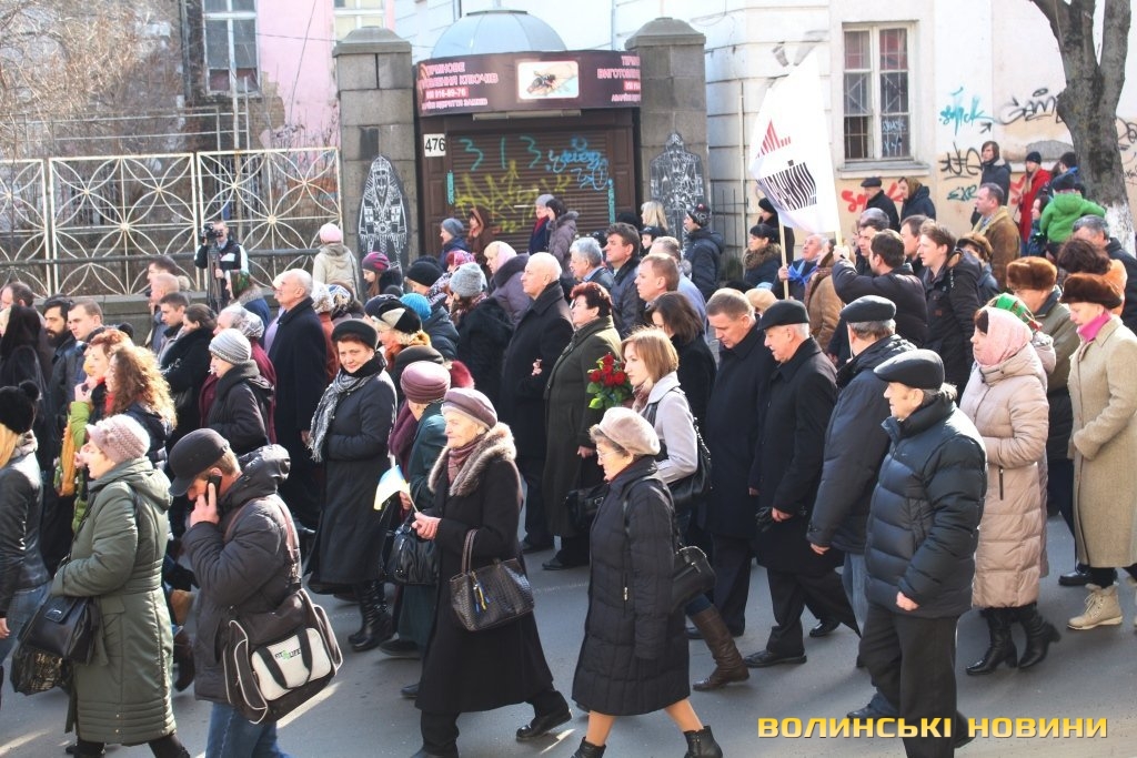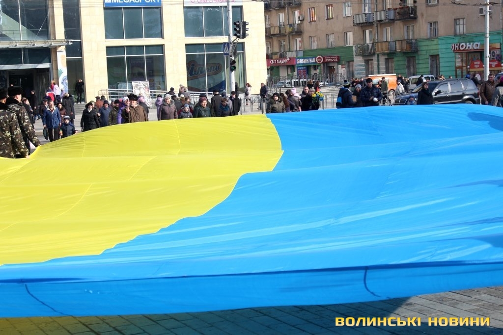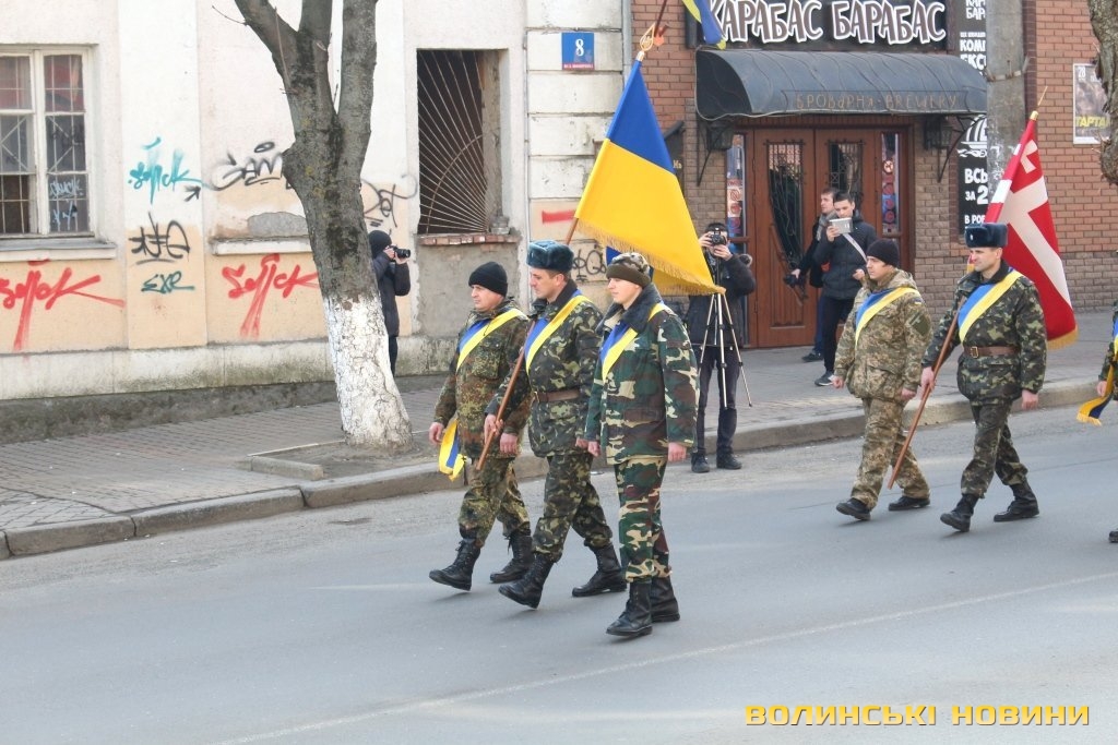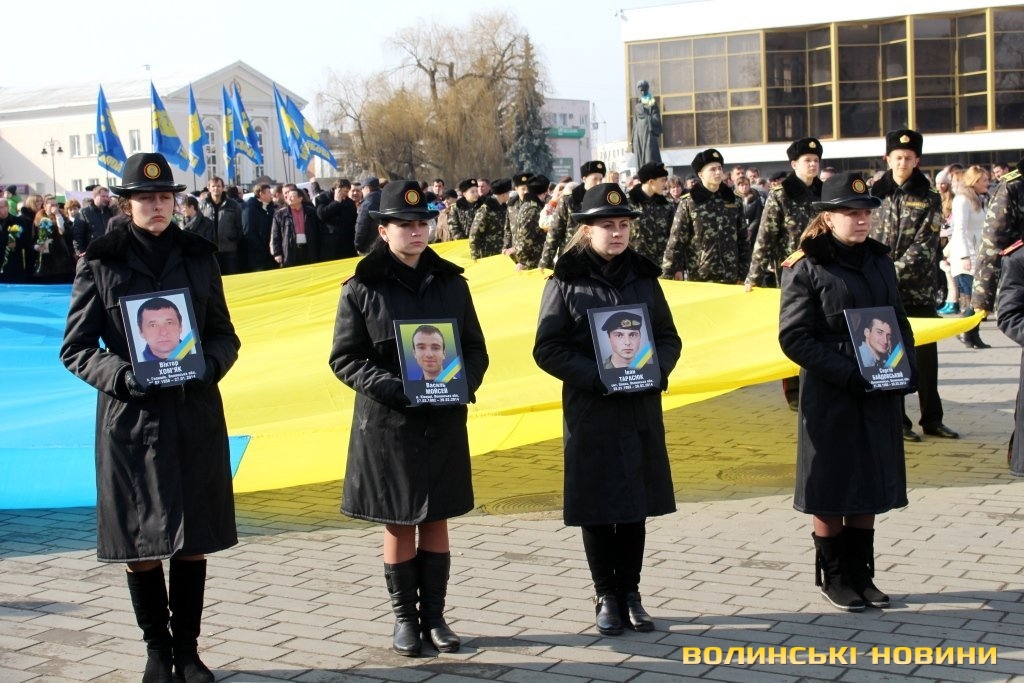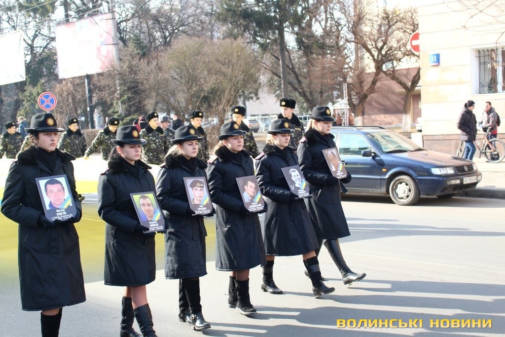На чолі колони несли прапори України та Волині, вихованки Волинського обласного ліцею з посиленою військово-фізичною підготовкою несли портрети волинян-Героїв Небесної Сотні, а також великий синьо-жовтий стяг. До ходи долучилися тисячі лучан. Взяли участь у акції також волинські високопосадовці.