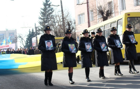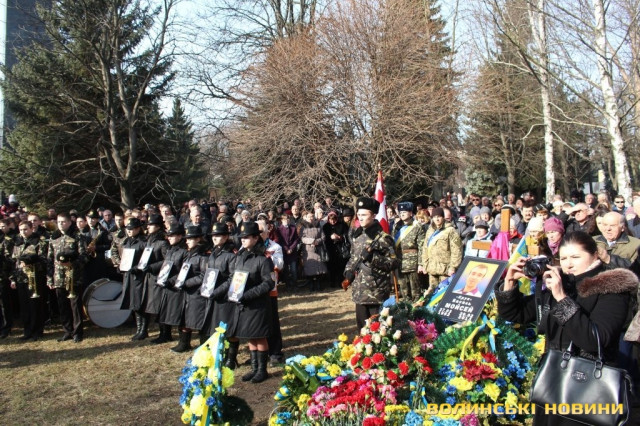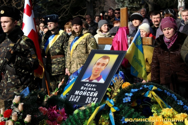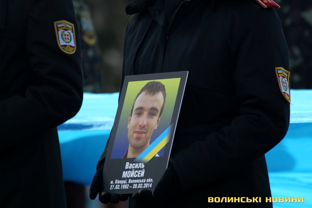 Тисячі волинян пройшли центром Луцька до місця поховання загиблого торік під час Революції Гідності лучанина Василя Мойсея.