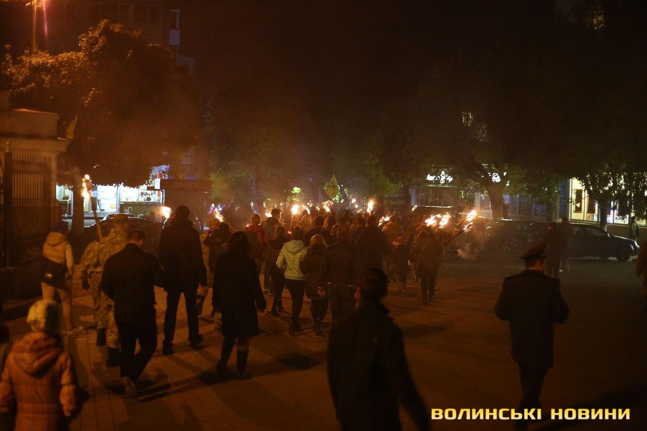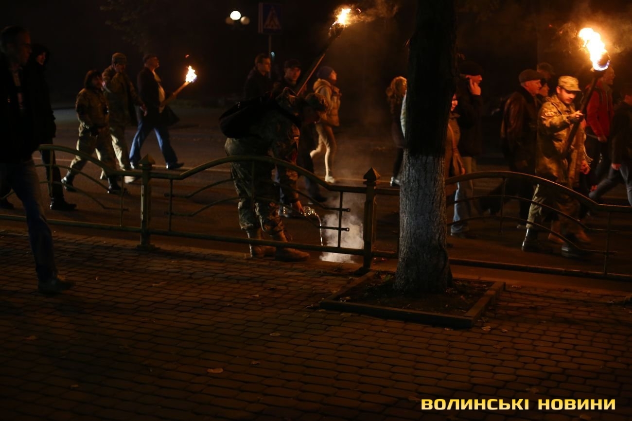 Цьогорічний смолоскипний марш, який традиційно організовують на свято Покрови, був не таким багаточисельним, як у минулі роки. Декількадесят осіб пройшли від Київського майдану до Замкової площі зі смолоскипами, вшанувавши національних героїв України.