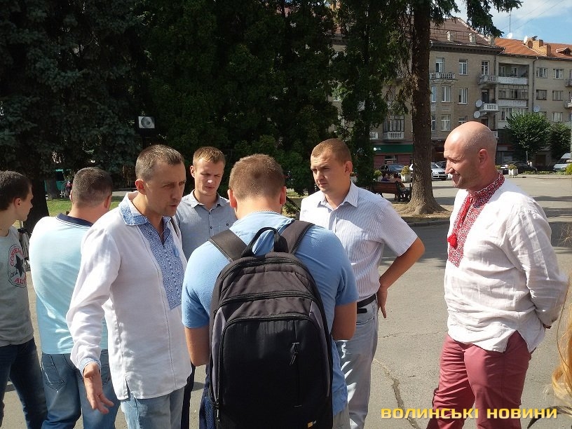 Акція протесту щодо функціонування російських банків на території Волинської області відбулася сьогодні, 19 серпня, в центрі Луцька.