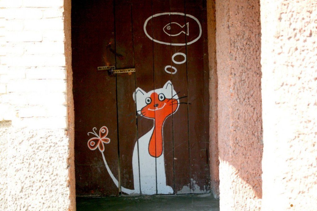 «У нас тут багато котиків. Ми їх дуже любимо і тому тема котів нам близька як нікому. Спочатку ми робили дитячий майданчик, а потім воно так все одне за одне чіплялося і вирішили розмалювати ще й стіни і двері будинку», – розповіла Наталія Гуркіна.